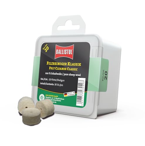 Ballistol Filzreiniger Klassik sind die schonende Alternative zu Renigungsbürsten oder Patches. Sie sind frei von chemischen Substanzen und reinigen ohne Füll- und Hilfsstoffe die Läufe Ihrer Waffen. Die Filzreiniger sind formstabil und dennoch elastisch, was beste Reinigungsergebnisse selbst im Kantenbereich der Züge und Felder ermöglicht. Außerdem eignen sich die Reiniger gut als Träger für Öl, Laufreiniger oder -pasten. Gefertigt aus 100 % Schafwolle.