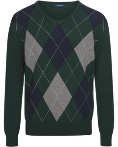 Der Herren Pullover von HIGHMOOR vereint zeitloses Design mit hochwertiger Materialauswahl. Hergestellt aus einer feinen Mischung aus Baumwolle und Merinowolle, bietet dieser Pullover nicht nur einen angenehmen Tragekomfort, sondern auch eine ausgezeichnete Wärmeisolierung. Der V-Ausschnitt verleiht dem Kleidungsstück eine elegante Note und macht es vielseitig kombinierbar, sei es für den Alltag oder besondere Anlässe. Das traditionelle Argyle-Muster im Vorderteil sorgt für einen klassischen und stilvollen Look, der nie aus der Mode kommt. Die sorgfältige Verarbeitung und das Fully-Fashioned Strickverfahren garantieren eine perfekte Passform und Langlebigkeit. Rippenbündchen an den Ärmeln und am Saum runden das Design ab und sorgen für eine optimale Anpassung an den Körper. Dieser Pullover ist nicht nur ein zeitloser Klassiker, sondern auch ein praktisches Kleidungsstück für die kühleren Tage. Die Kombination aus Funktionalität und Stil macht ihn zu einem unverzichtbaren Bestandteil jeder Herrengarderobe. Ideal für modebewusste Männer, die Wert auf Qualität und zeitloses Design legen.