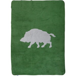 Kuschelig weiche Heimdecke mit jagdlichem Keilermotiv. Hergestellt nach OEKO-TEX®-Standard, hautsympathisch und schadstoffgeprüft.
